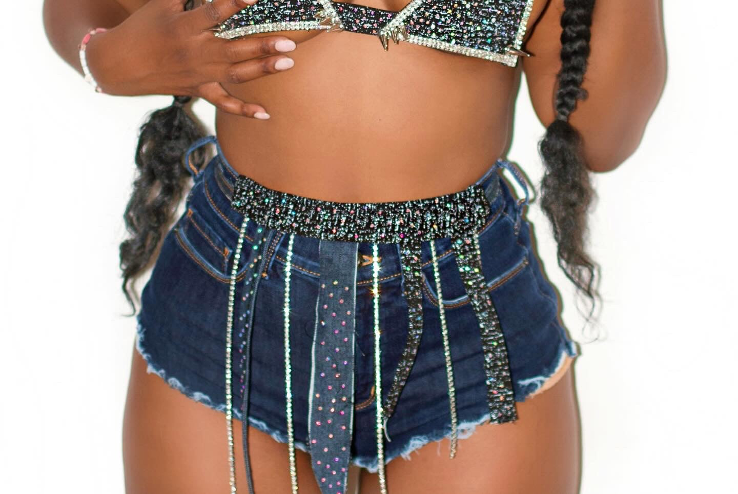 Experience your Wildest Dreamz in this HANDMADE High quality fabric enhancement with adhesive gem stones, Outlined in diamond trim w | a magical hint of spike placement. It feels like a dream come true 🩵